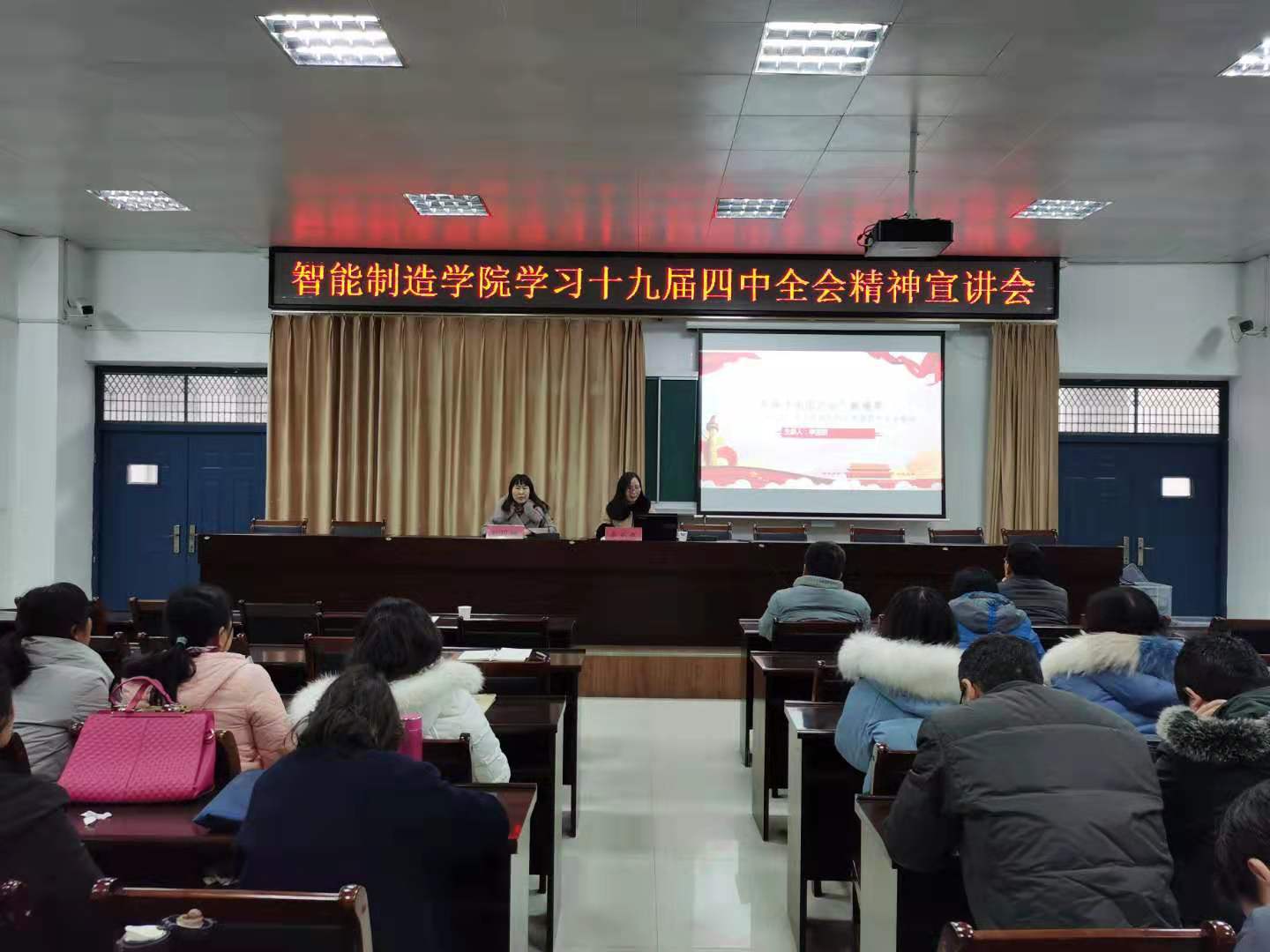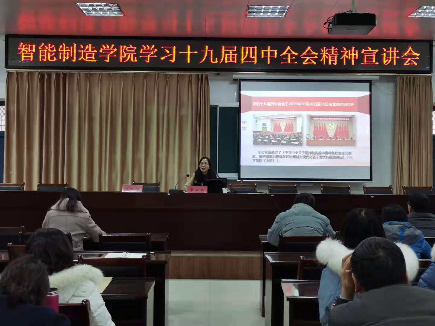 为深入学习党的十九届四中全会精神,12月20日,yl6809永利在1106会议室举行学习党的十九届四中全会精神宣讲会。特邀马克思主义公司李亚慈教授以《开辟“中国之治”新境界》为主题作辅导报告。公司全体教职工聆听了报告,宣讲会由公司党总支书记刘国梅主持。