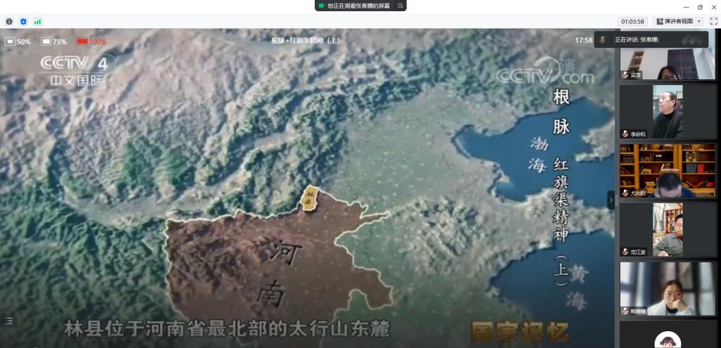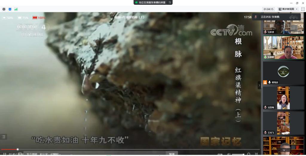 第二项,支部全体党员共同观看大型纪录片《根脉》之《红旗渠精神》。“红旗渠就是纪念碑”,“红旗渠精神永在”,纪录片更加清晰、直观地展现了20世纪60年代,河南省林县县委带领数万英雄儿女,在千峰如削的太行山上建成的“红旗渠”。习近平总书记在河南安阳红旗渠考察时强调,“要用红旗渠精神教育人民特别是广大青少年,社会主义是拼出来、干出来、拿命换来的,不仅过去如此,新时代也是如此。”
