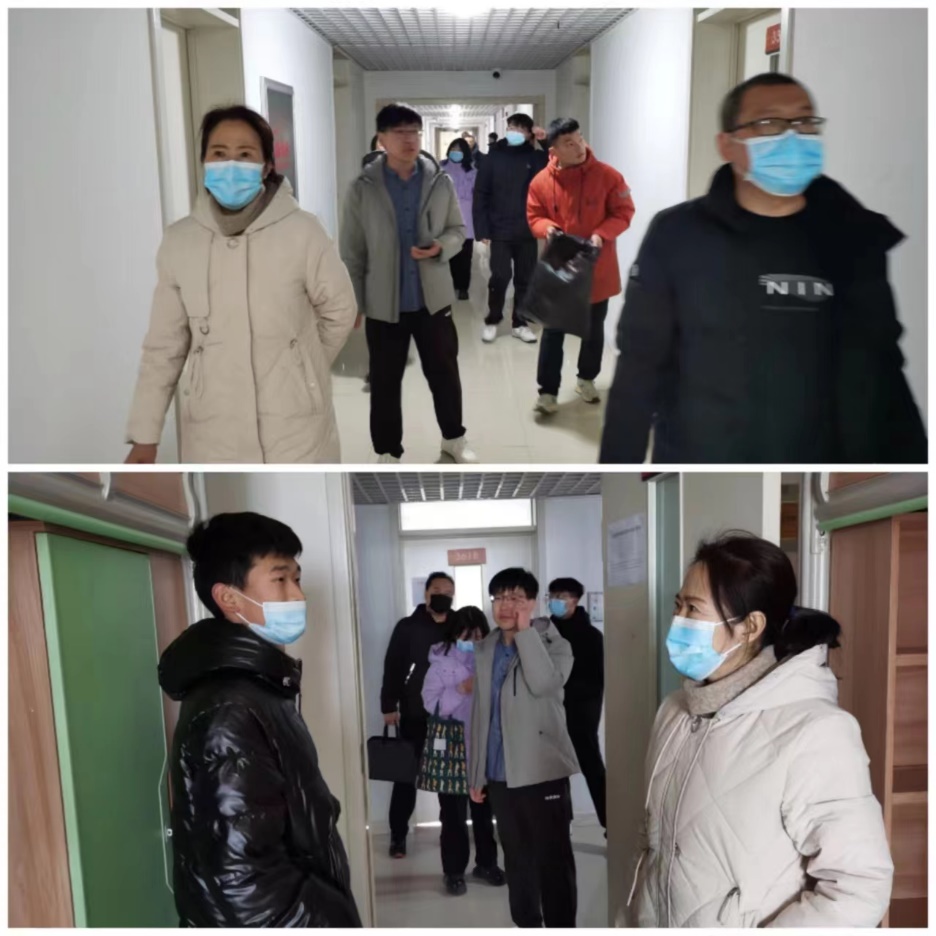 2月10日,进入员工公寓楼查看宿舍到位情况并看望返校员工