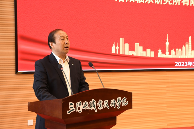 高飞在致辞中讲到职业教育是国民教育体系和人力资源开发的重要组成部分,对建设教育强国、科技强国、人才强国,推动经济高质量发展,保障和改善民生,具有十分重要的意义。洛阳轴承研究所有限公司是我国航天、航空、兵器、舰船、核工业等领域配套轴承的主要研制单位,相继完成了国防卫星、空间飞行器、空间站、运载火箭、导弹、大飞机、新型歼击机、武装直升机等国防重点武器装备领域高端轴承的配套任务。在推动高端轴承国产化的过程中,需要培养大批的高素质技术技能型人才来实现高端轴承的精密制造。希望公司能够为洛轴研轴承产业及相关产业链提供高技能储备人才,通过校企深度合作、共融共促,打造立足中原辐射全国的轴承高级技能人才培养基地。