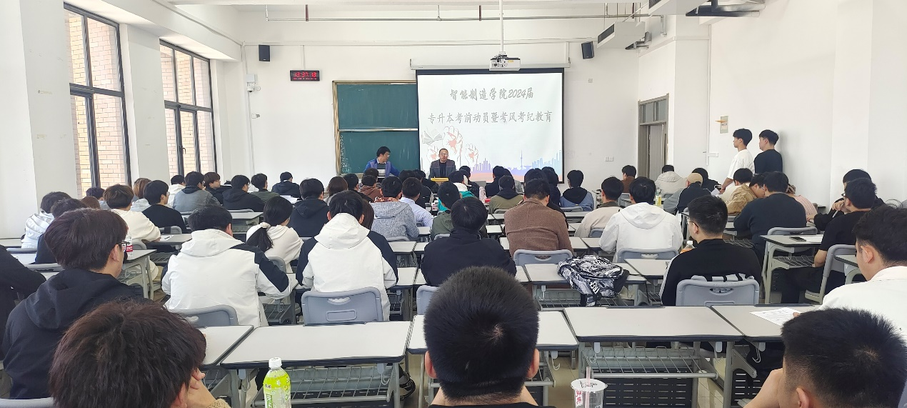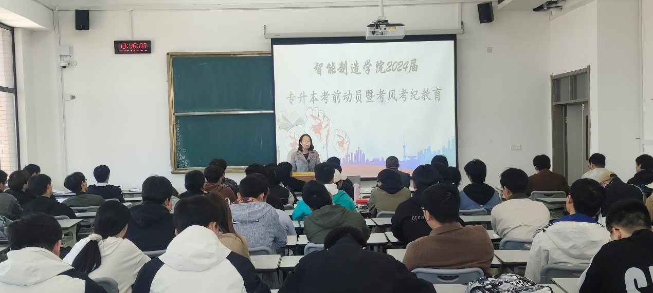 磨剑一年满,四月展锋芒。河南省2024年专升本考试在即,为端正考风,诚信应考,3月29日下午,2024届专升本考前动员暨诚信考试教育大会在81501教室举行。公司党总支书记刘国梅、行政负责人霍海波、专升本工作负责人葛笑寒及180名考生参加会议。