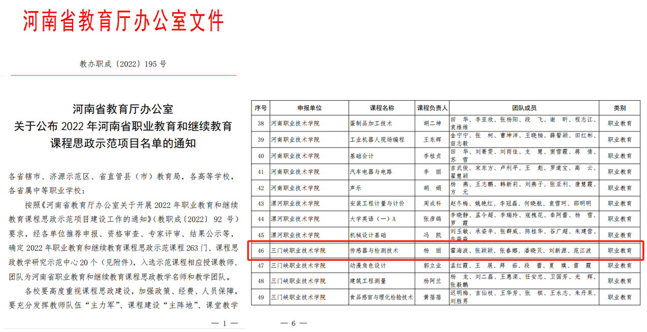 2022年河南省职业教育和继续教育课程思政示范项目《传感器与检测技术》