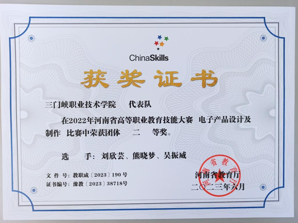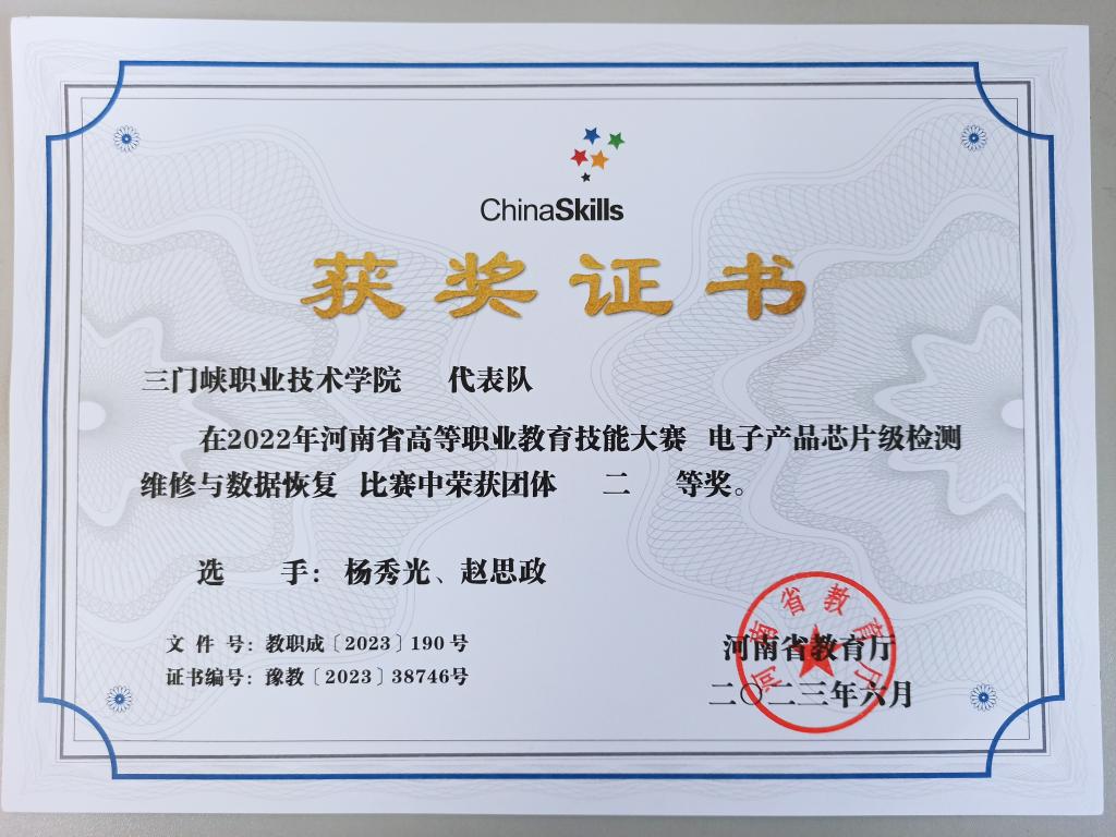 近年来,公司先后荣获河南省高等职业教育技能大赛一等奖3项、二等奖11项,三等奖14项。涵盖现代电气控制系统安装与调试、工业机器人技术应用、机器人系统集成、电子产品设计及制作、物联网技术应用、电子产品芯片级检测维修与数据恢复等赛项。
