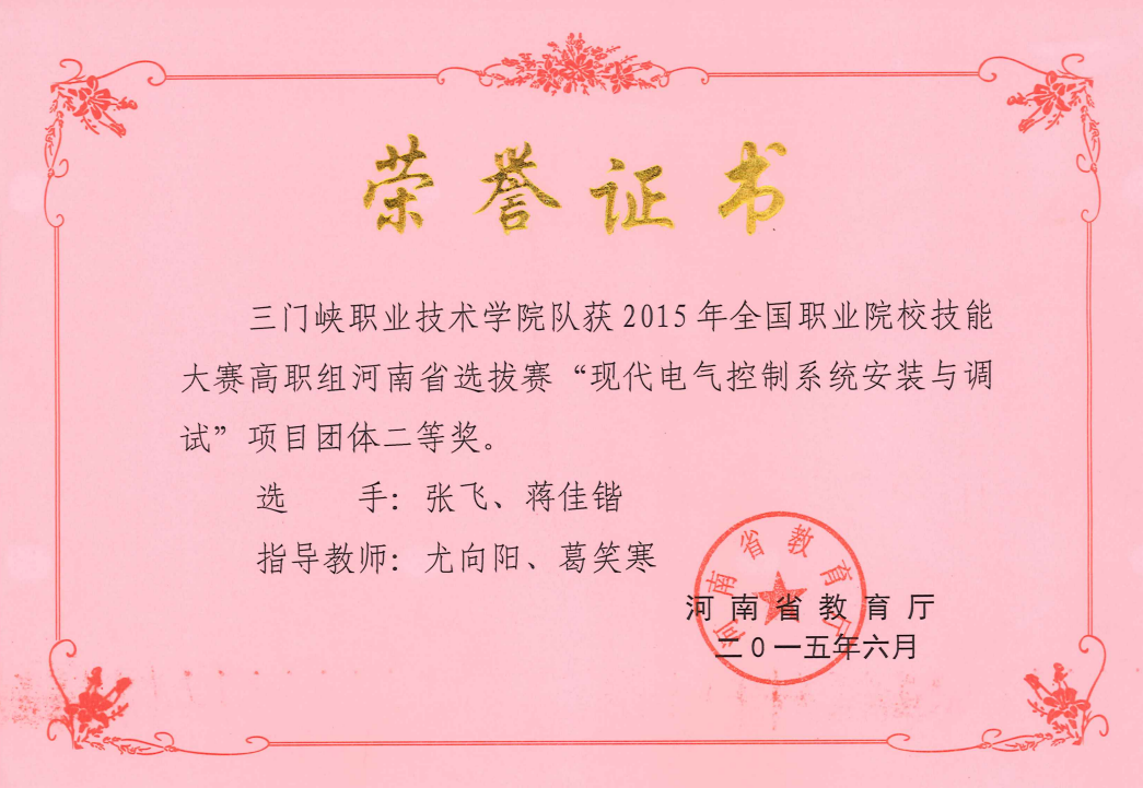 2015年河南省职业院校技能大赛“现代电气控制系统安装与调试”二等奖