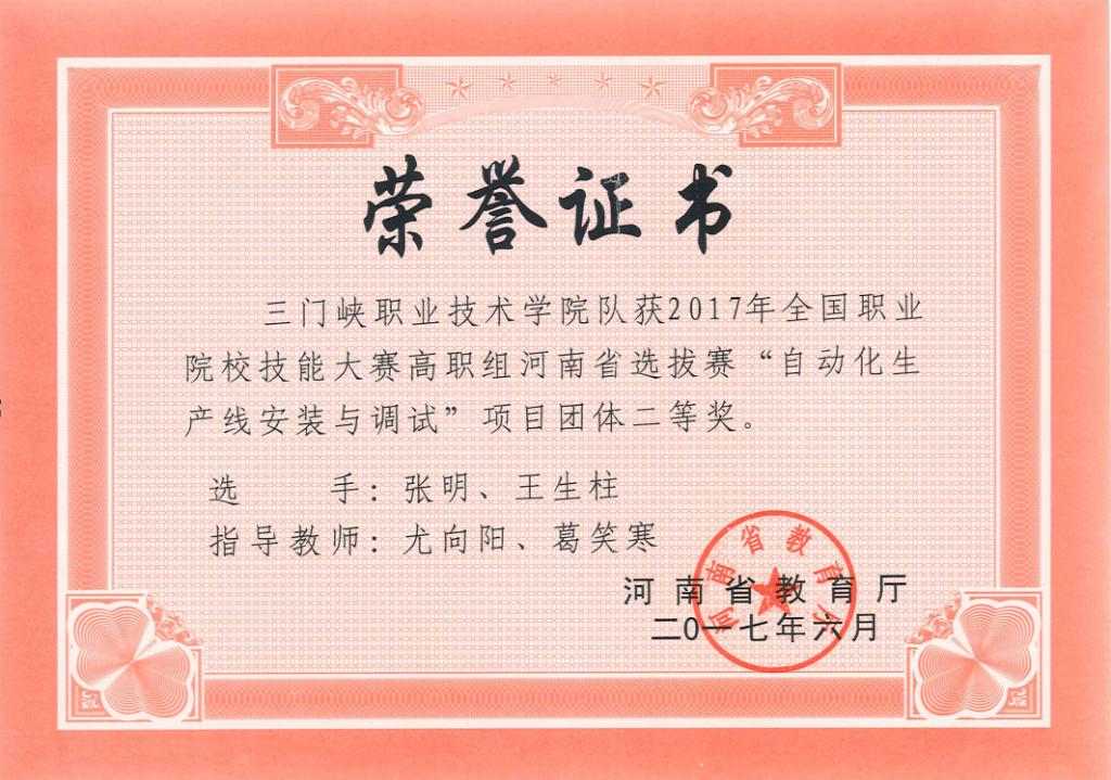 2017年河南省职业院校技能大赛“自动化生产线安装与调试”三等奖