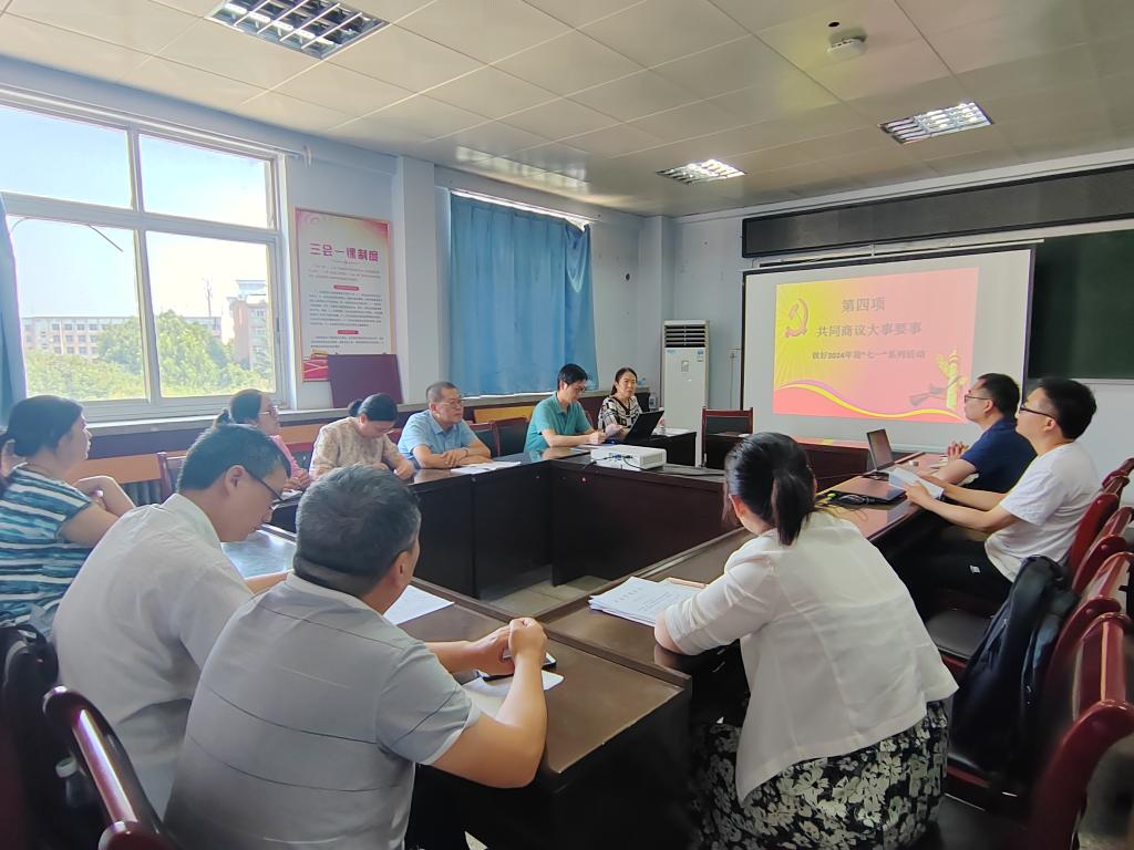 会议第四项,共同商议大事要事,围绕做好2024年迎“七一”系列活动展开讨论。