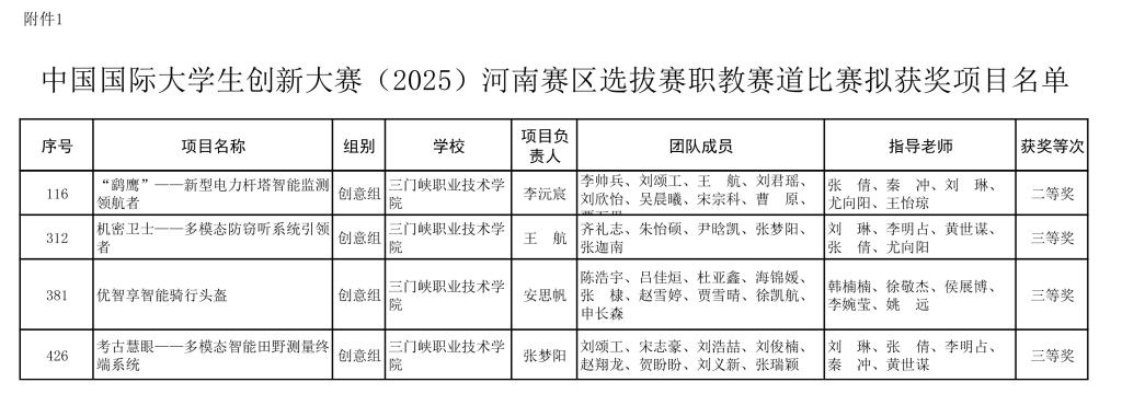 近日,河南省教育厅发布了《关于对中国国际老员工创新大赛(2025)河南赛区选拔赛职教赛道比赛拟获奖名单的公示》,公司学子荣获二等奖1项,三等奖3项。