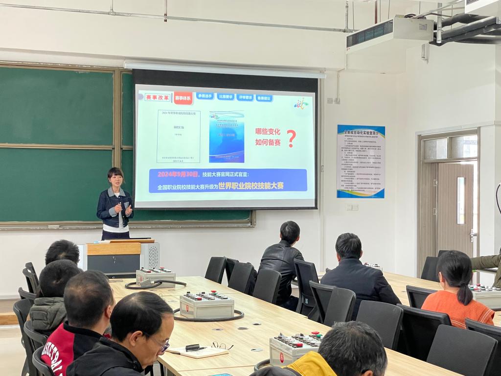 最后,张倩从世界职业院校技能大赛执裁的亲身经历作经验交流与分享,详细介绍了装备制造一赛道——智能电梯装配调试与检验小组的详细情况。