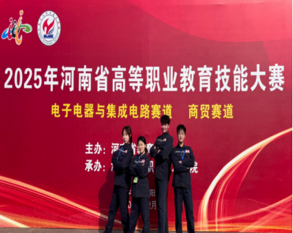 12月16日至19日,由河南省教育厅主办、河南工业职业技术公司承办的2025年河南省高等职业教育技能大赛“电子电器与集成电路”赛道圆满落幕。公司由范江波带队,杨丽、刘新源作为指导老师,24级智能产品开发与应用专业的尹晗凯、24级物联网应用技术专业的吴豪和许静、24级电子信息工程技术专业的潘梦珂,来自不同专业的4名同学组成的参赛团队稳扎稳打、沉着应战,凭借过硬的专业技能与默契的团队协作,与来自全省各地47个高等职业院校的47支参赛队展开技能比拼,最终荣获小组第一名的优异成绩,斩获金奖,并在赛道复评环节取得第三名的佳绩,为公司赢得了荣誉。