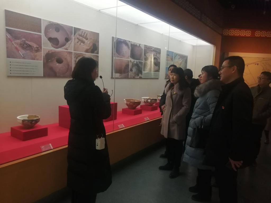 首先,全体教师参观了著名的仰韶文化博物馆,全体同志跟随讲解员系统地了解了仰韶遗址的发现、仰韶文化的分布、类型和仰韶时期人类的经济生活、科技艺术成就、社会的发展演变、仰韶遗址的发掘,以及仰韶文化自发现九十年来的若干重要的发现和研究成果。在参观过程中,各种彩陶罐、陶器座、器盖、小口尖底瓶等出土文物引得众人由衷赞叹,大家对仰韶文化的博大精深以及远古先民们的智慧敬佩不已,为源远流长的中华文化而自豪,更加坚定了对中华民族的文化自信。