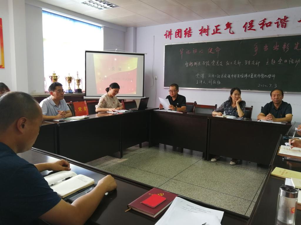 党总支书记刘国梅以“团结一致为实现中华民族伟大复兴而努力奋斗”为题,分别从“没有共产党就没有新中国”、“我们共产党人应做好共产党的事业”、“要做共产党初心使命的捍卫者”三个方面展开讲述,从中华民族灿烂的五千年文明史到中国共产党的成立,再到我们中华民族这头东方雄狮终于站起来、强起来,并且取得令世界震惊和瞩目的成就,其根本原因在于中国共产党的领导,刘书记希望我们能够更加深刻地理解和践行为中国人民谋幸福,为中华民族谋复兴的初心和使命。