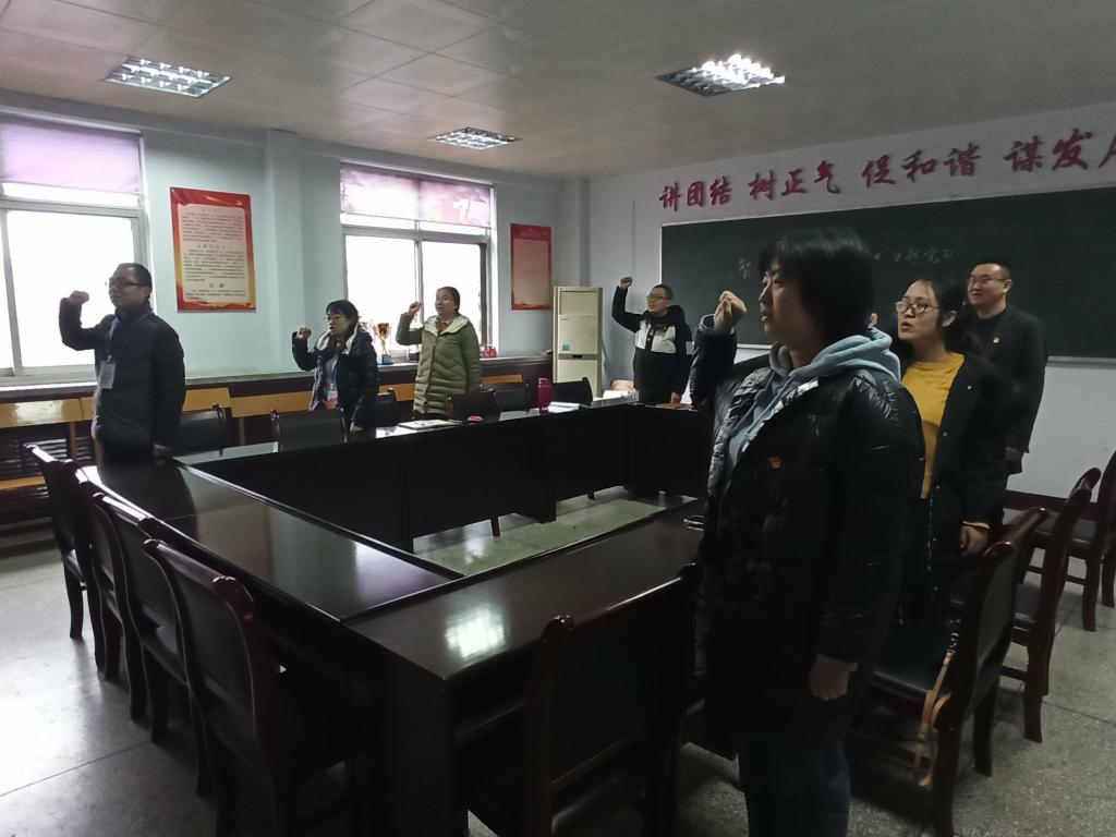 首先,重温入党誓词,在支部纪检委员张颖颖的领誓下,全体党员面向党旗庄严宣誓,这不仅是庄严神圣的仪式,更重要的在于宣誓忠诚、牢记使命、坚定信念,表达拥护党的纲领、遵守党的章程、履行党员义务、执行党的决心、严守党的纪律、保守党的秘密、对党忠诚,愿为共产主义奋斗终身的坚定态度和决心。