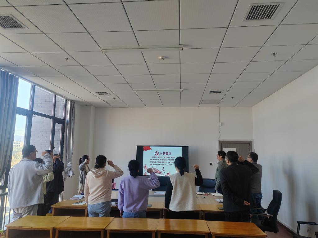 会议第五项,重温入党誓词,在范江波领誓下全体党员面向党旗庄严宣誓,宣誓忠诚、牢记使命、坚定为共产主义奋斗终身的态度和决心。