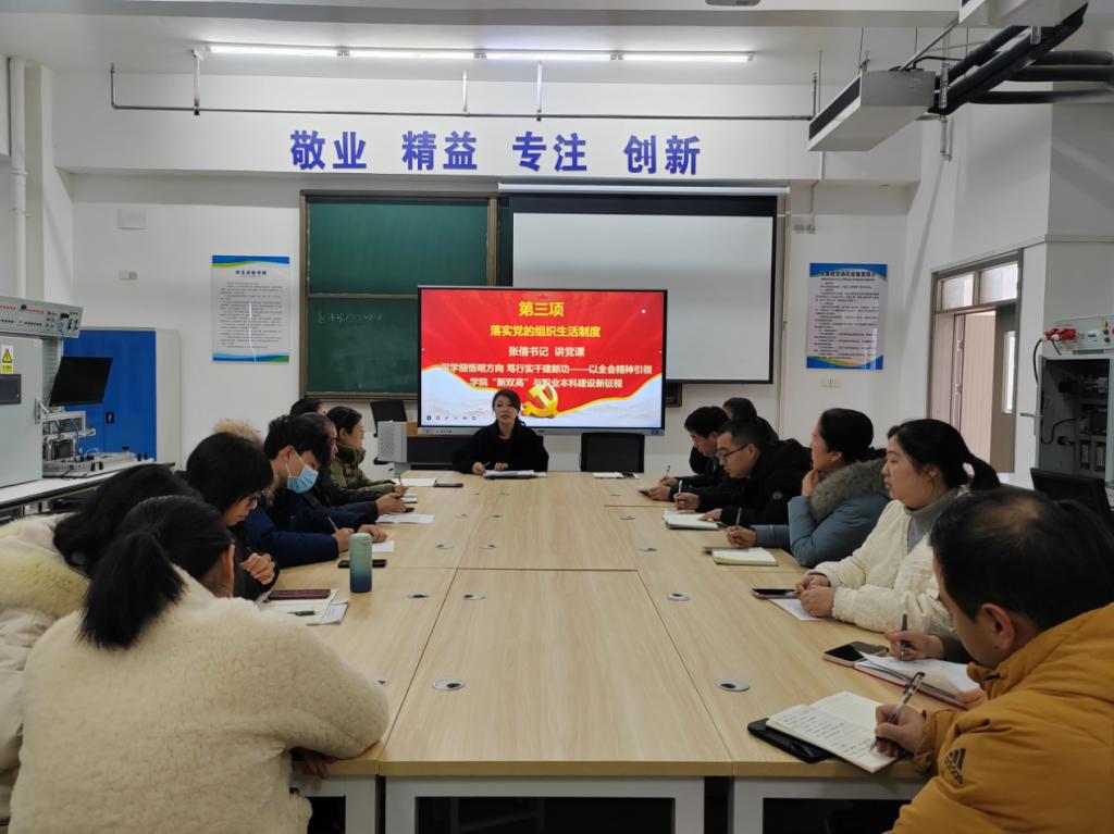 会议第三项,落实党的组织生活制度,支部书记张倩以“深学细悟明方向 笃行实干建新功——以全会精神引领公司‘新双高’与职业本科建设新征程”为题讲授党课,结合公司发展实际,为党员明晰在“新双高”与职业本科建设中的职责与发力方向。