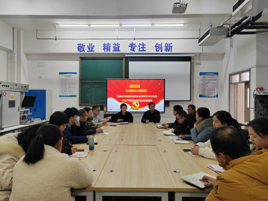 会议第四项,共同商议大事要事,总支书记秦冲传达公司党委关于公司中心工作的相关要求,与会党员聚焦双高建设和职业本科两大核心任务,就产教融合高质量发展路径展开深入研讨,积极建言献策,凝聚发展合力。
