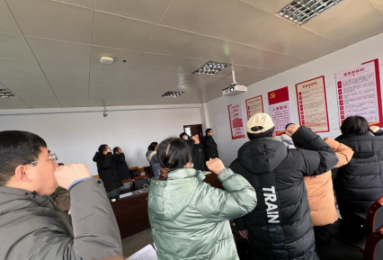 会议第五项,重温入党誓词,由支部书记范江波领誓,全体党员面向党旗庄严宣誓,重温初心使命,表达为共产主义事业奋斗终身的坚定信念。