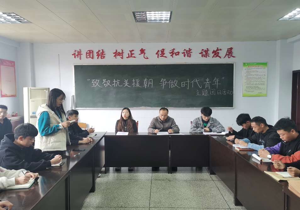 为在全校广大青年中深入宣传抗美援朝战争的光荣历程和伟大胜利,广泛开展爱国主义和革命英雄主义教育,在新时代继承和弘扬伟大的抗美援朝精神和民族精神,激励动员广大青年更加紧密地团结在以习近平同志为核心的党中央周围,增强“四个意识”、坚定“四个自信”、做到“两个维护”,传承红色基因,为决胜全面建成小康社会、夺取新时代中国特色社会主义伟大胜利、实现中华民族伟大复兴的中国梦贡献青春力量,10月30日中午,yl6809永利在3409会议室开展“致敬抗美援朝 争做时代新人”主题团日活动。