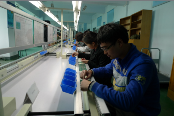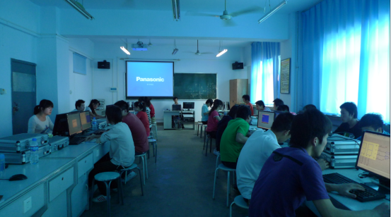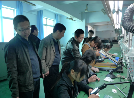 图5 同学们在电工电子实训基地实训,所制作的节能限电器应用于公司宿舍