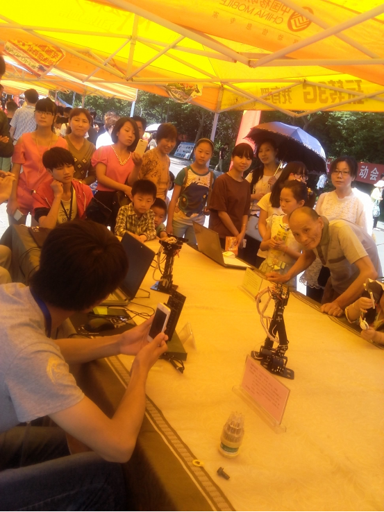 这不是武术,也不是体操,而是在三门峡市第三届青少年创新创意大赛现场里两个6自由度跳舞机器人的精彩表演。这两位身份特殊的表演者在行进过程中,顺利而圆满地完成了前翻身、后翻身、立正、行走等一系列动作,引来了市民一波又一波的围观和一浪高过一浪的欢呼声。它们是yl6809永利yl6809永利的同学们为本次创新创意大赛而专门设计制作的新作品。
