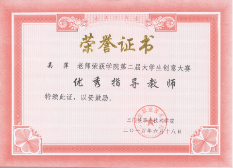 员工创意大赛优秀指导教师获奖证书